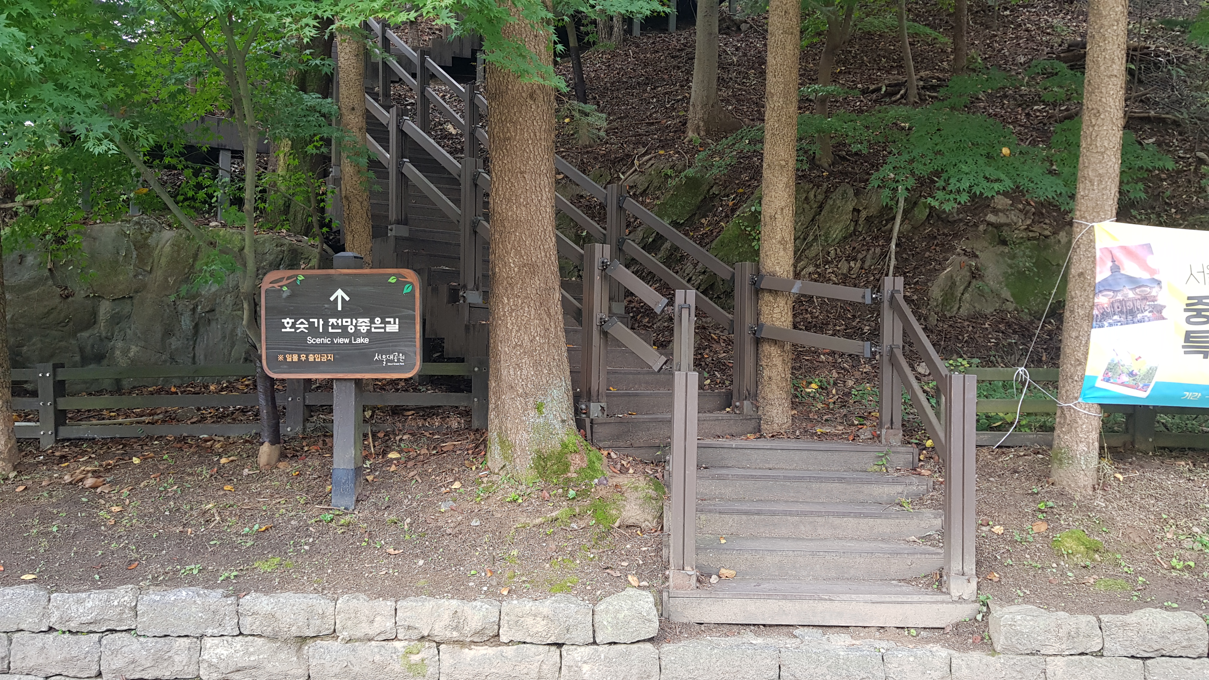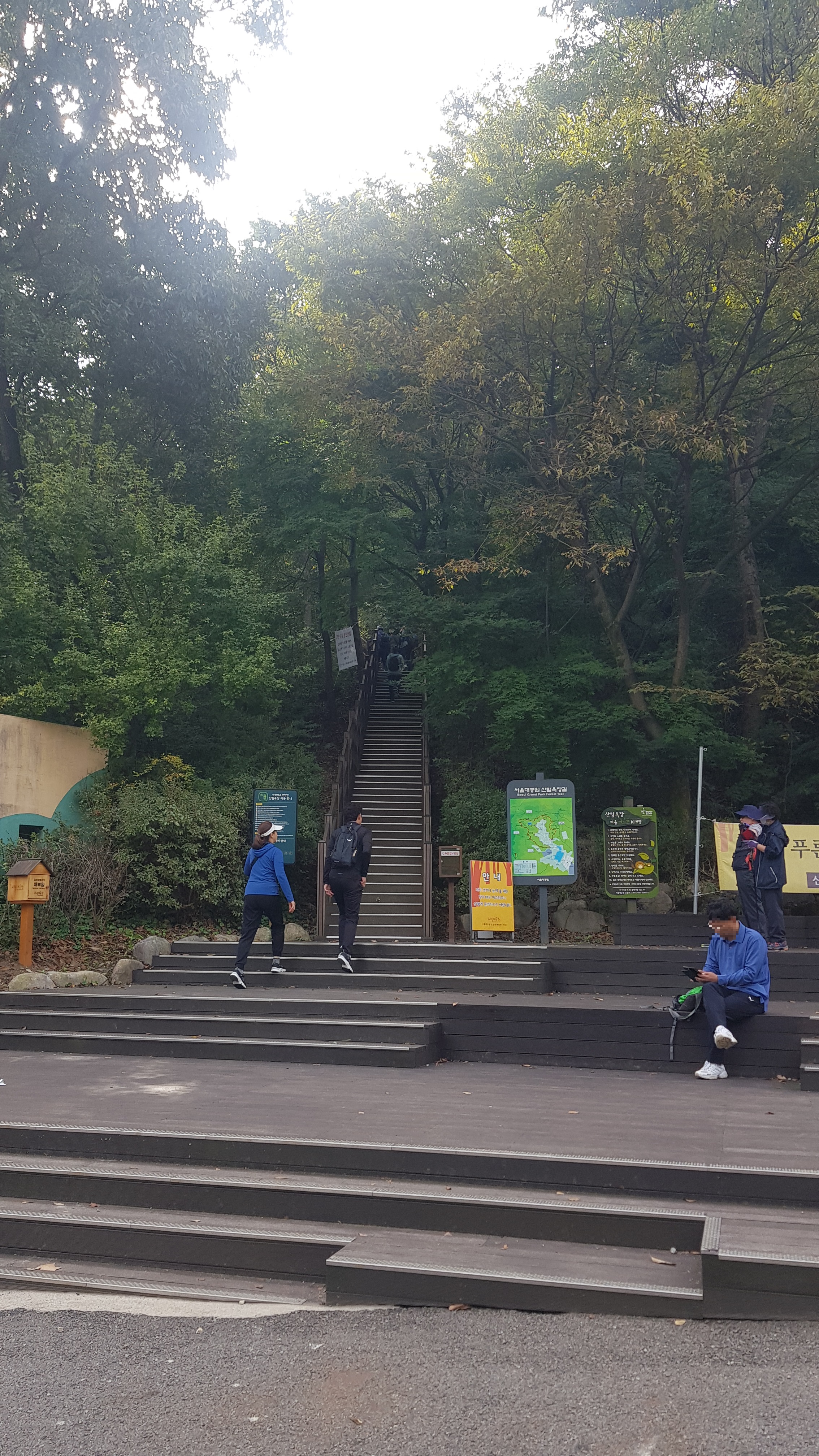 앞에 계단이 보이는 곳이 산림욕장 방향이다. 왼쪽은 아스팔트길로된 동물원둘레길.